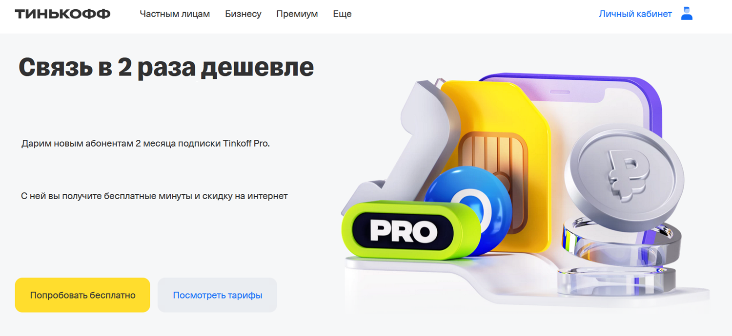 Удивительно, но сейчас протестировать работу оператора можно бесплатно: на первый месяц новые клиенты получают 1200 минут разговоров и скидка на интернет 30% в рамках подписки “Tinkoff Pro” бесплатно на два месяца. Для получения подарка необходимо оплатить связь всего на 300 руб. При переносе номера от другого оператора подарок будет действовать в первые три месяца.