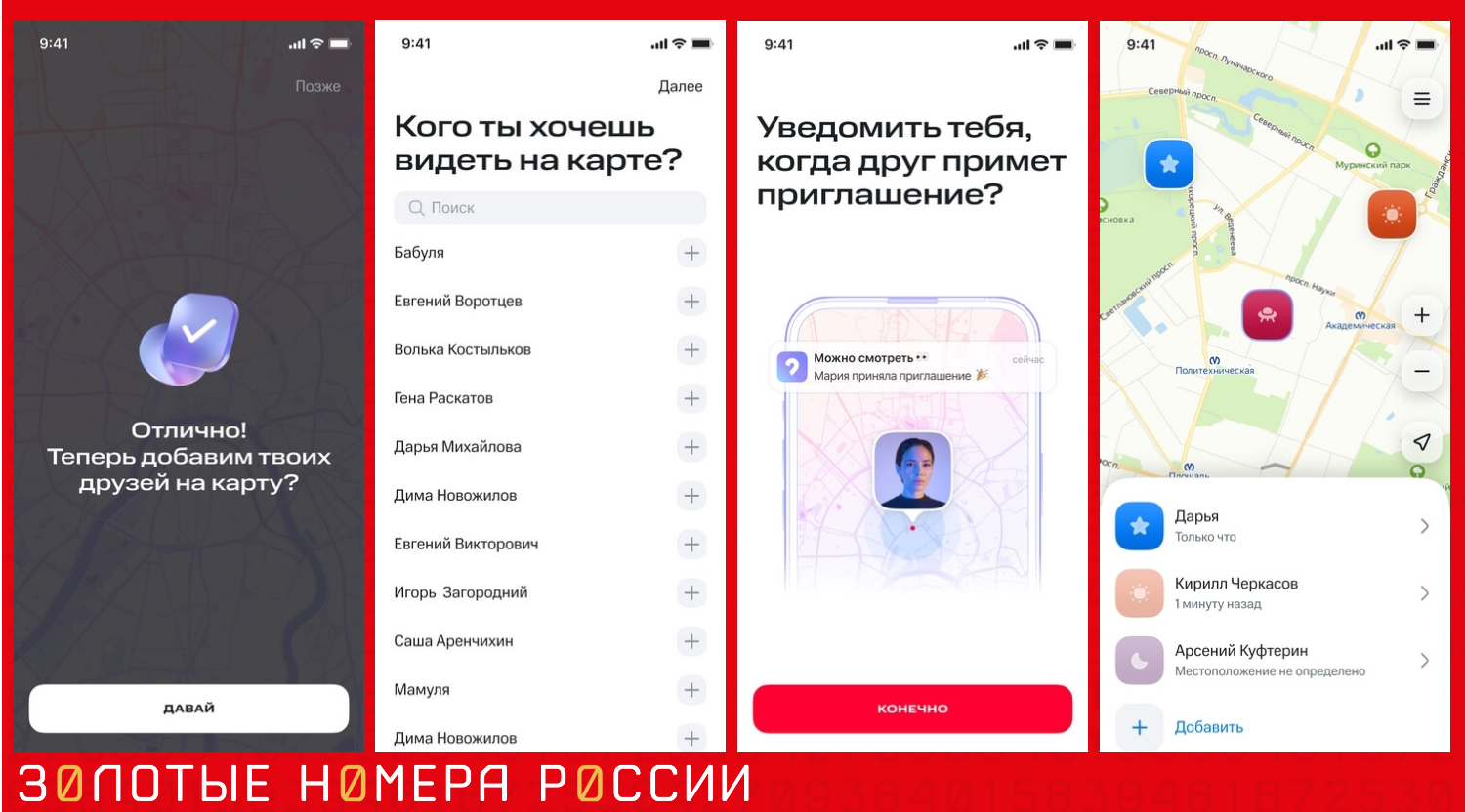 Теперь можно добавлять друзей, отправив им приглашения. Для удобства использования можно не только отправить приглашение через мессенджеры, но и предоставить доступ к контактам – в этом случае будет отправляться SMS. Для подтверждения, достаточно установить приложение “Кто/Где”, и после авторизации дать разрешение на отслеживание. В дальнейшем все действия совершаются в приложении на вашем смартфоне.