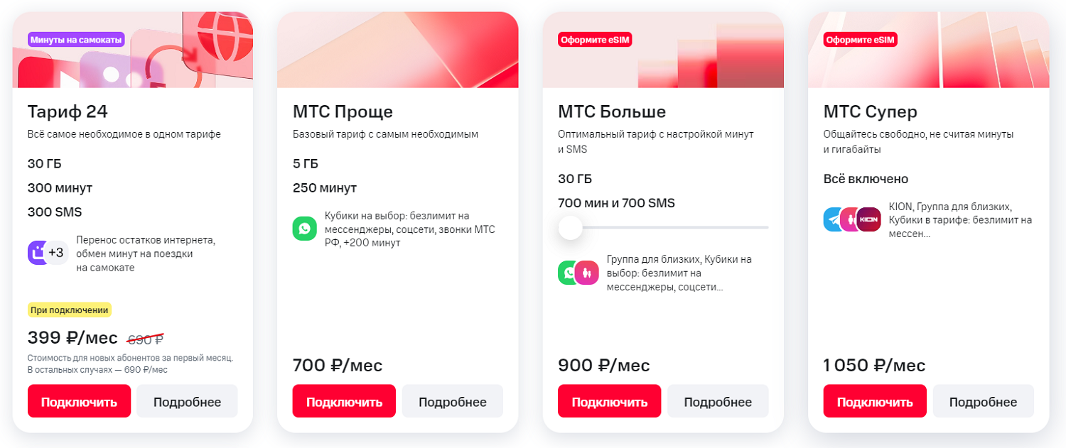 Слабая сторона МТС — тарифы. Все предложения оператора стоят довольно дорого и рассчитаны на клиентов, активно потребляющих услуги связи.